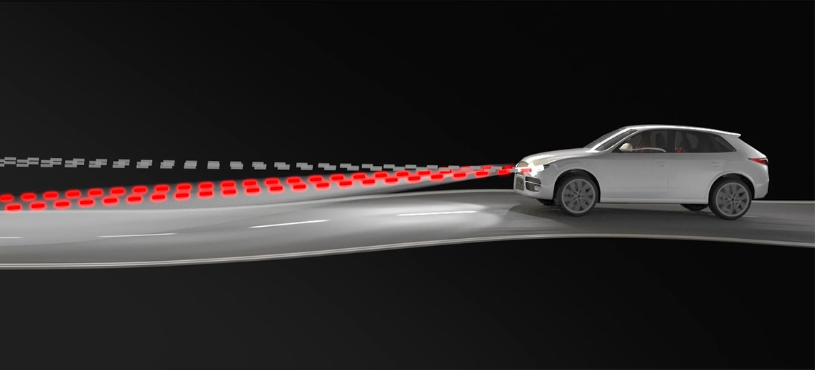 The regulatory requirement is to compensate for the effect of vehicle load, but a more advanced approach is to adjust the height of the lights in response to acceleration, braking, or road irregularities. Automatic adjustment prevents oncoming traffic from being dazzled and ensures that the driver always has the best possible visibility when driving in the dark – it’s important that the driver will be able to detect pedestrians early enough.